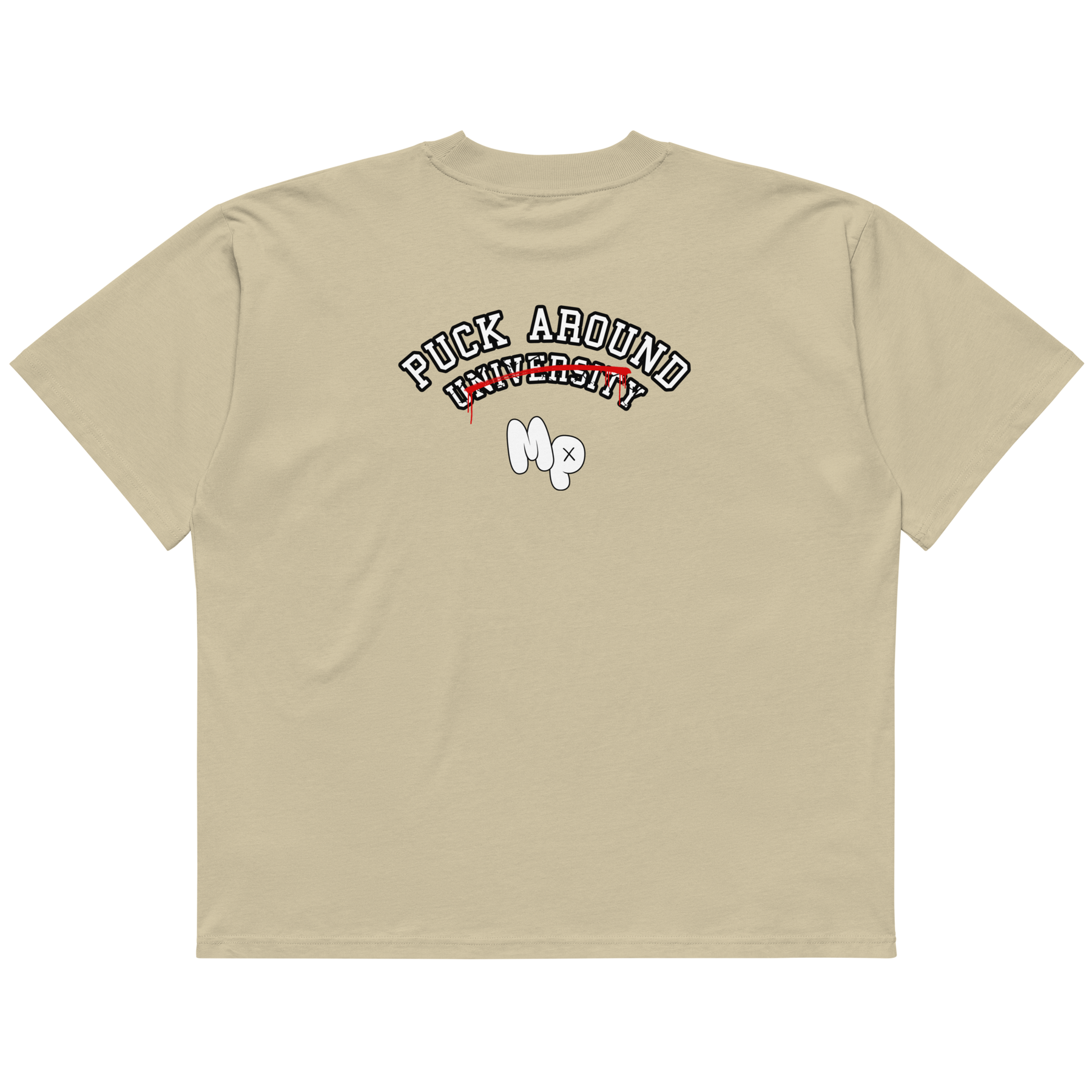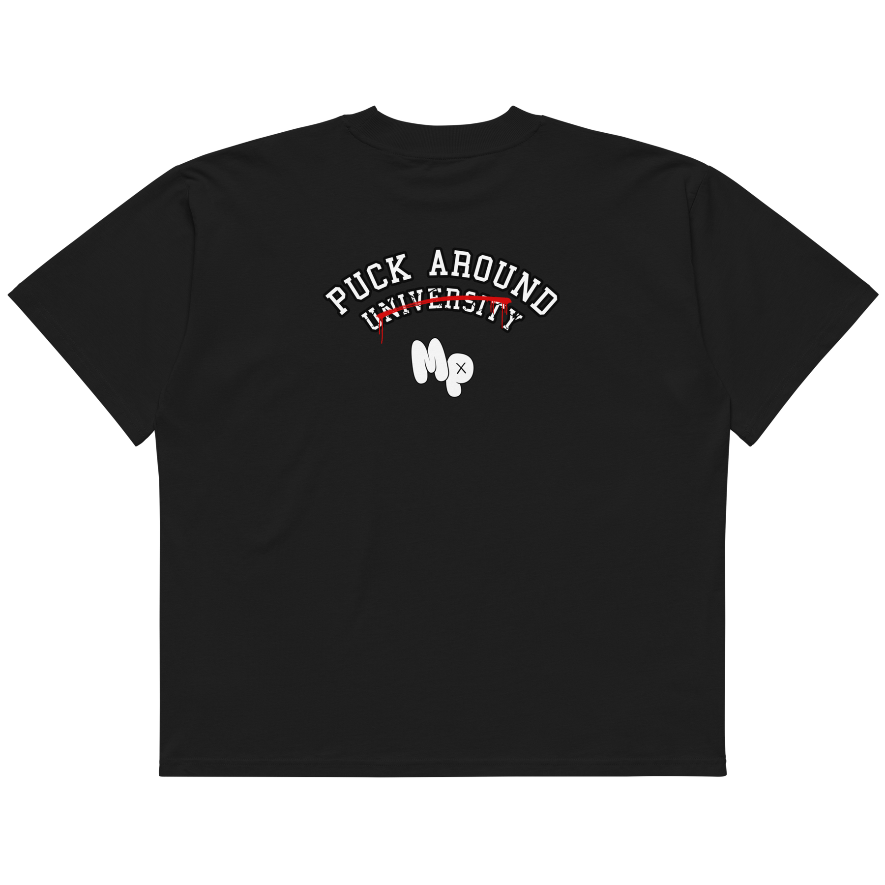 The Puck Around University Oversized Tee blends classic collegiate style with a Mother Puckers attitude. Clean varsity lettering, a bold strike-through, and the signature MP mark give this piece a timeless look with just enough rebellion to set it apart.