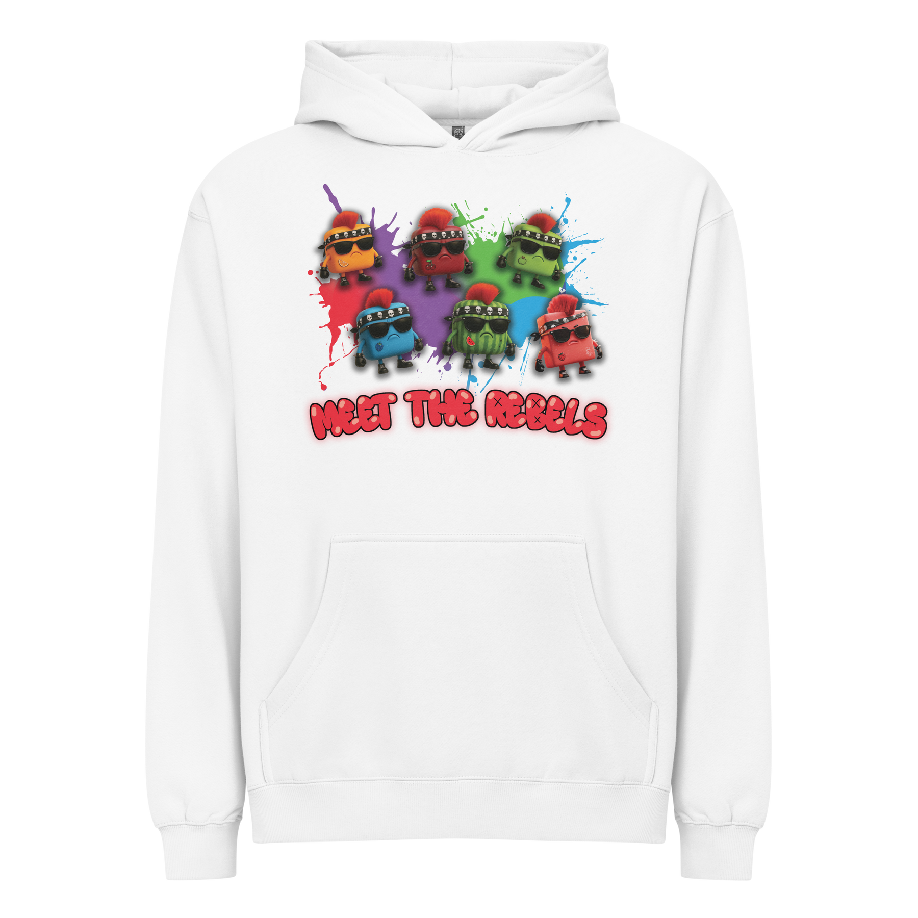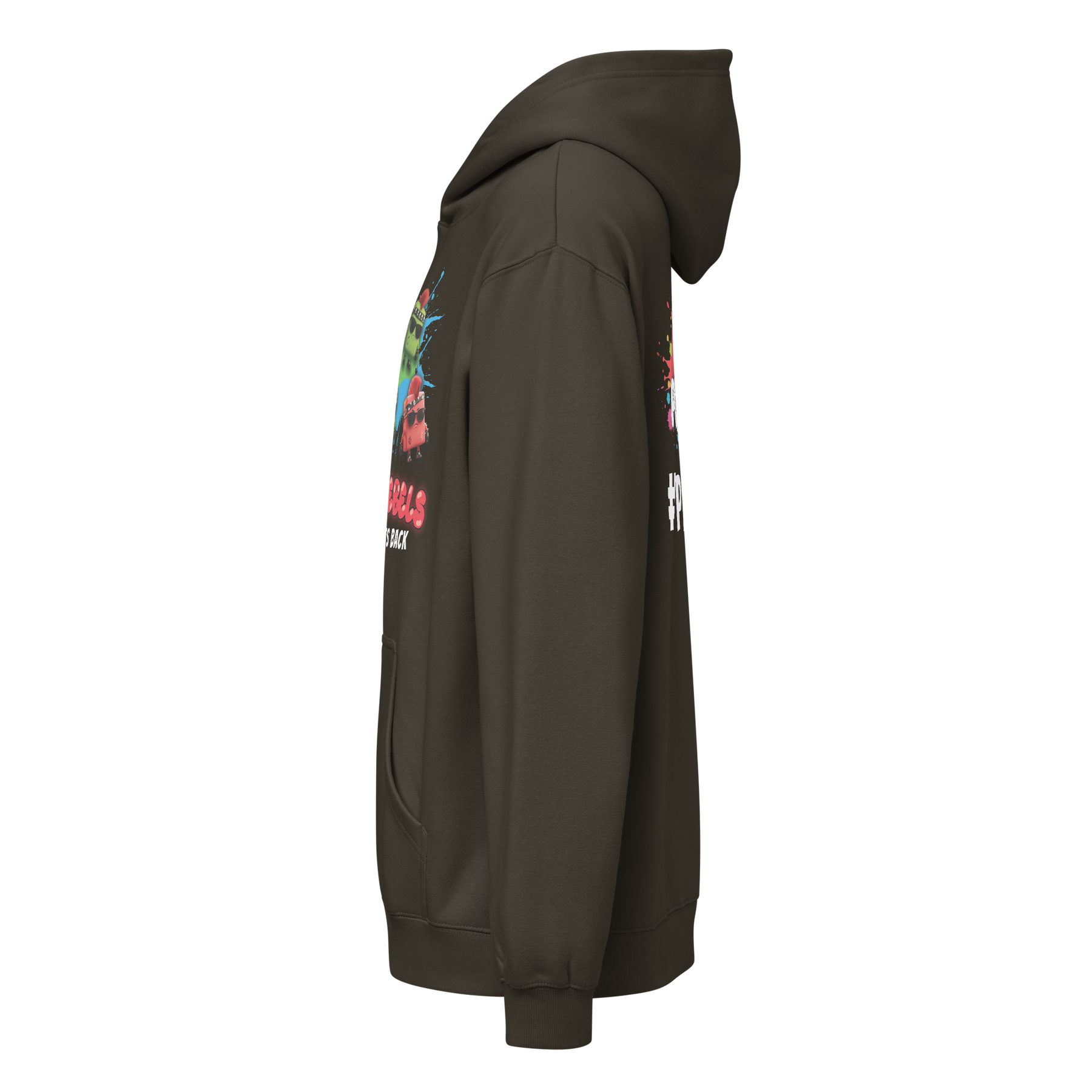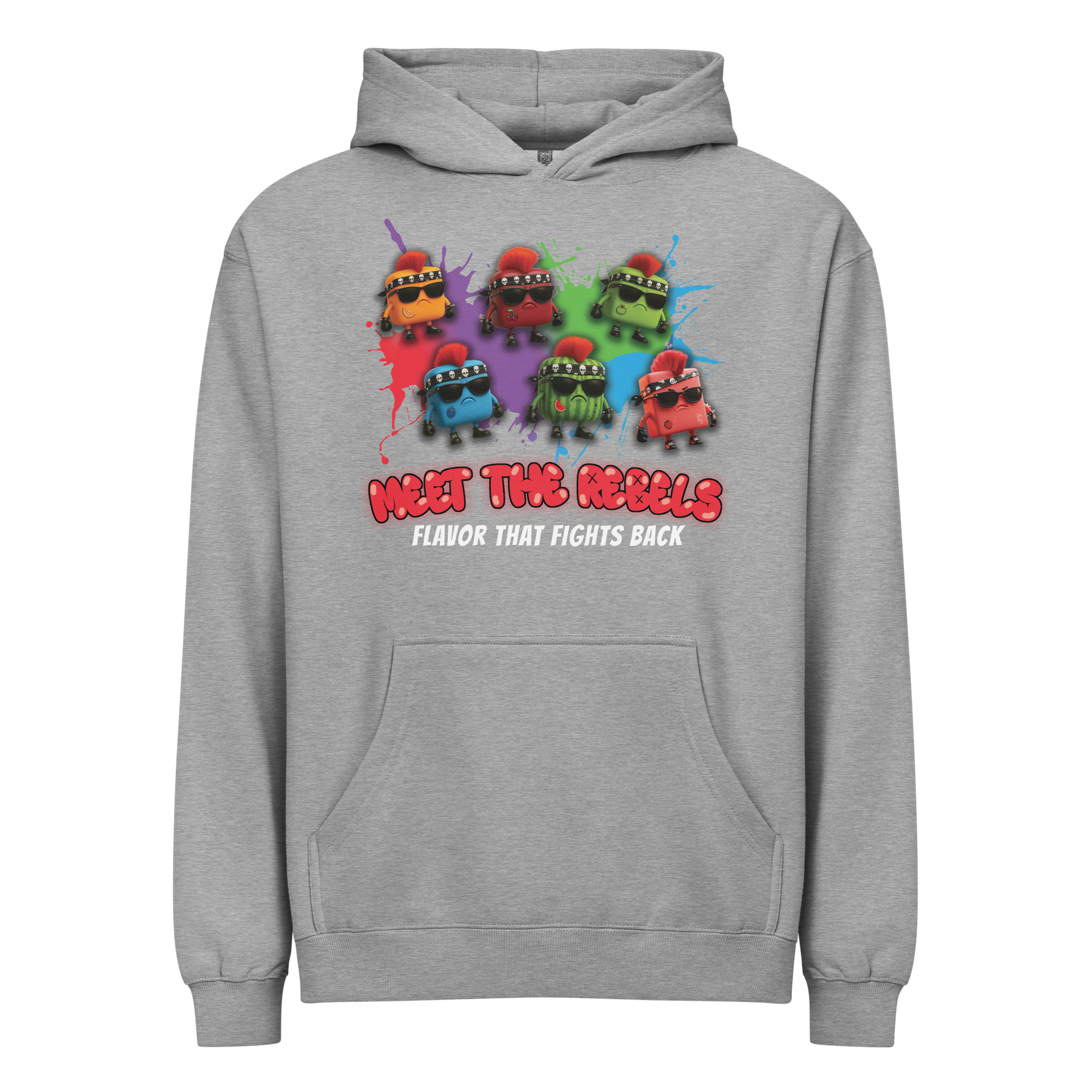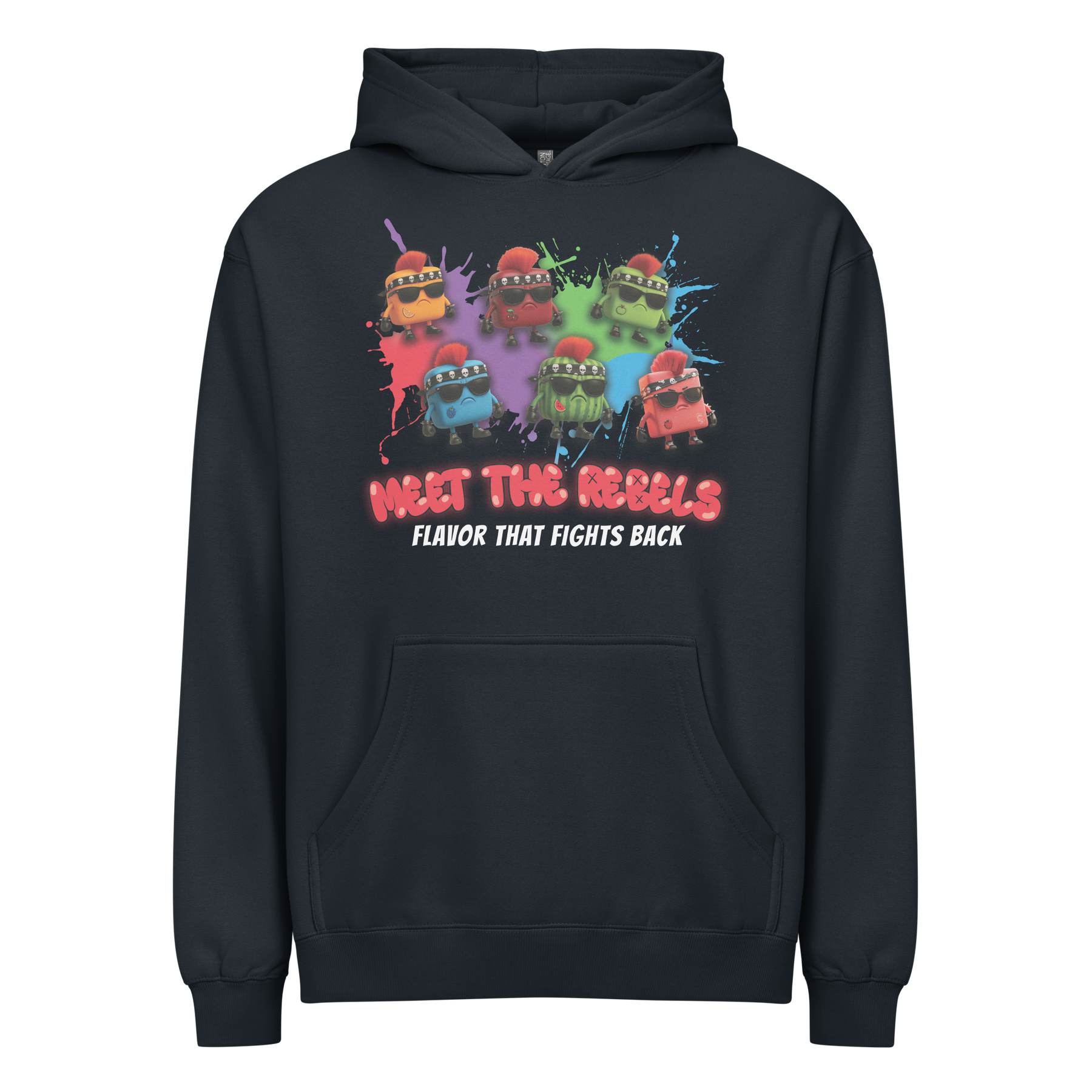 The Rebels Rumble Hoodie brings the full crew together. Every character shows up with attitude, backed by bold color hits and the signature Mother Puckers energy that doesn’t sit quietly. This piece is loud by design—built to stand out whether you’re in the crowd or leading it.